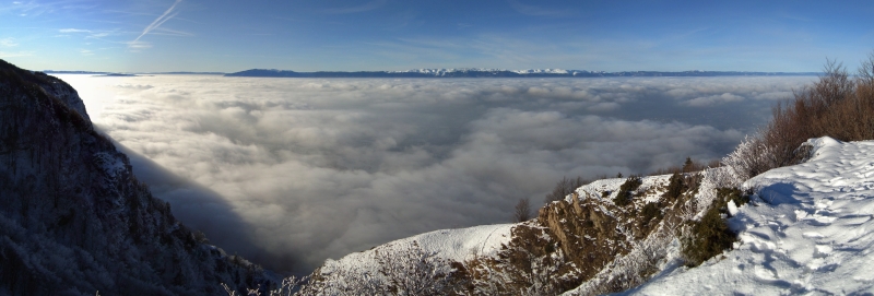 Il y a quelques mois, j’avais pris une photo panoramique de Genève depuis le Salève. C’était l’été et le temps était très clair. La version hivernale est presque plus jolie… On ne voit plus Genève mais quel spectacle!