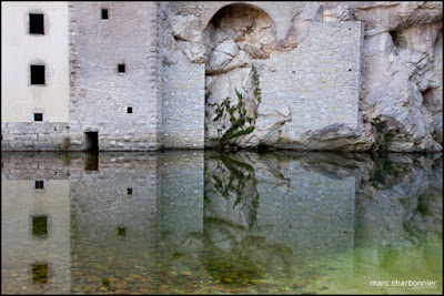 En me promenant au bord de la Bourne, mon regard a tout de suite été attiré par les reflets des falaises et des maisons dans l’eau… Séance photo obligatoire!